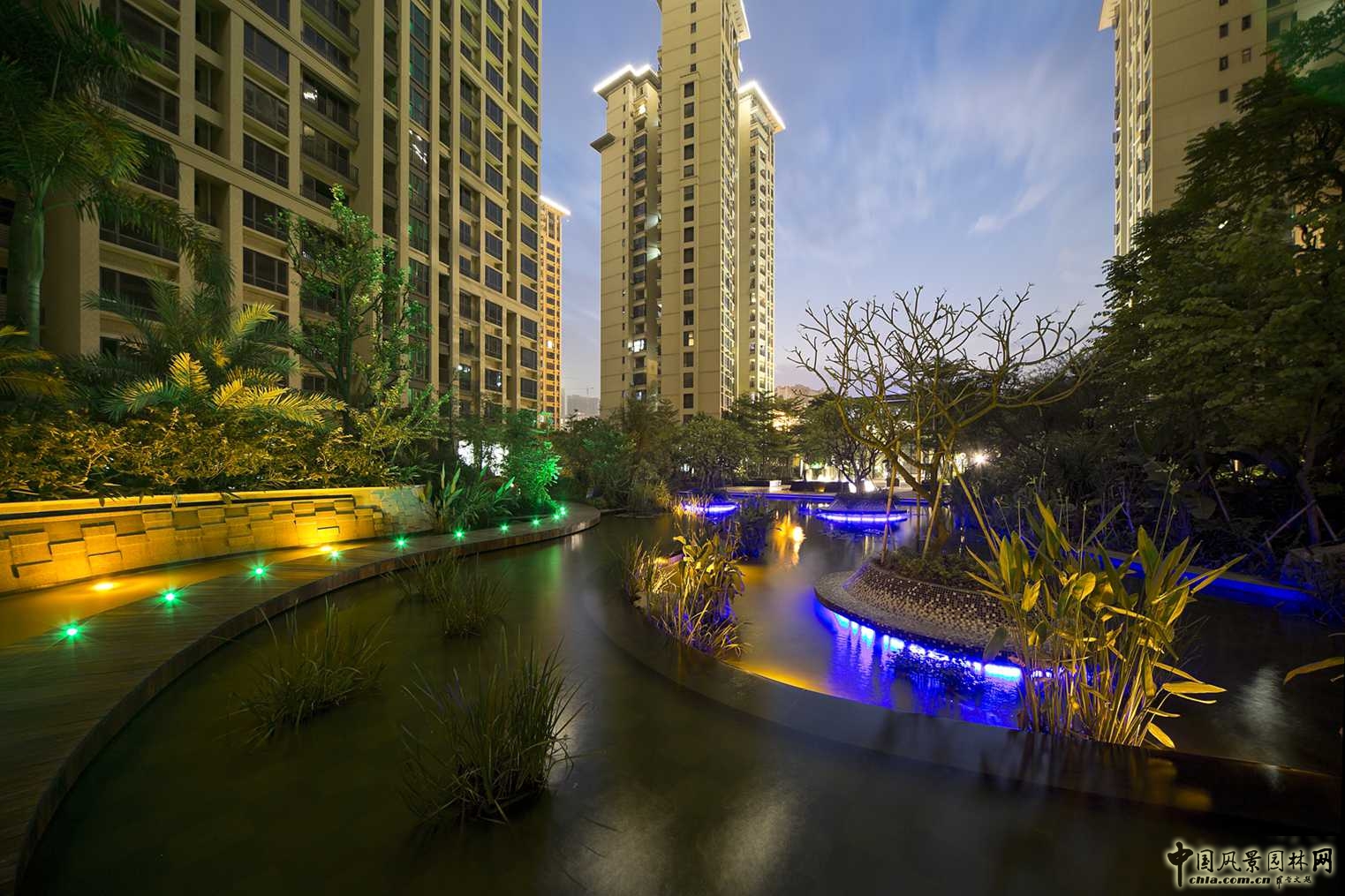 燈光與環境的結合,為住戶提供了一個優美舒適的夜間活動場所。