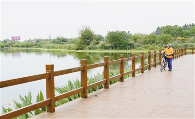天府綠道建設龍泉驛區天鵝湖示范段。資料圖片王若冰張青青攝