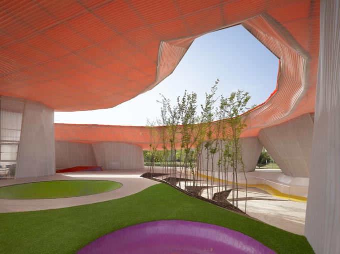 歷時十三個月,耗費120萬歐元,建筑師JoséSelgas和LucíaCano的設計宗旨是給孩子提供一個可以盡情娛樂玩耍的區(qū)域。建筑師運用開放的設計,五顏六色的門廊希望給前來玩耍的游客營造輕松活潑的空間氛圍。選用低廉的建筑材料,便宜的二手家具和一些臨時的設施,設計師目的不是造一所名垂千古經久不衰的建筑,而是以可負擔起的成本,為附近的青年孩童提供一個普普通通但是卻實用的玩耍場地。