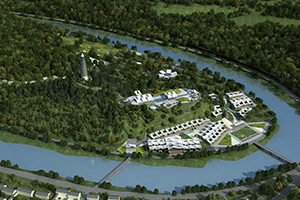這一項目涵蓋電子商務交流平臺、智能制造研發平臺和會議會展商務平臺等服務功能。設計靈感來源于中國天壇與宋瓷天目盞,采用現代鋼結構技術與中國木構文化相結合。